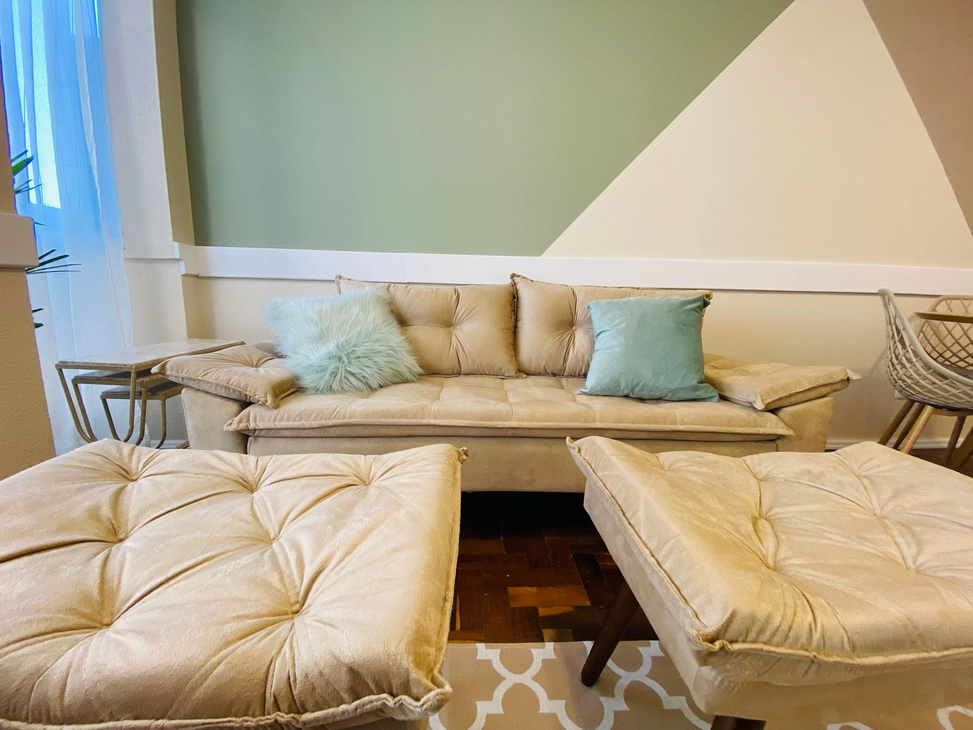 Quadros decorativos, luminárias de apoio, sofá com puffs, almofadas, cortinas e ventiladores de teto também compõem a decoração desta linda sala de estar que ainda conta com SMART TV (Canais de streaming) e com uma pequena e aconchegante varanda para momentos de descontração e bate papos;