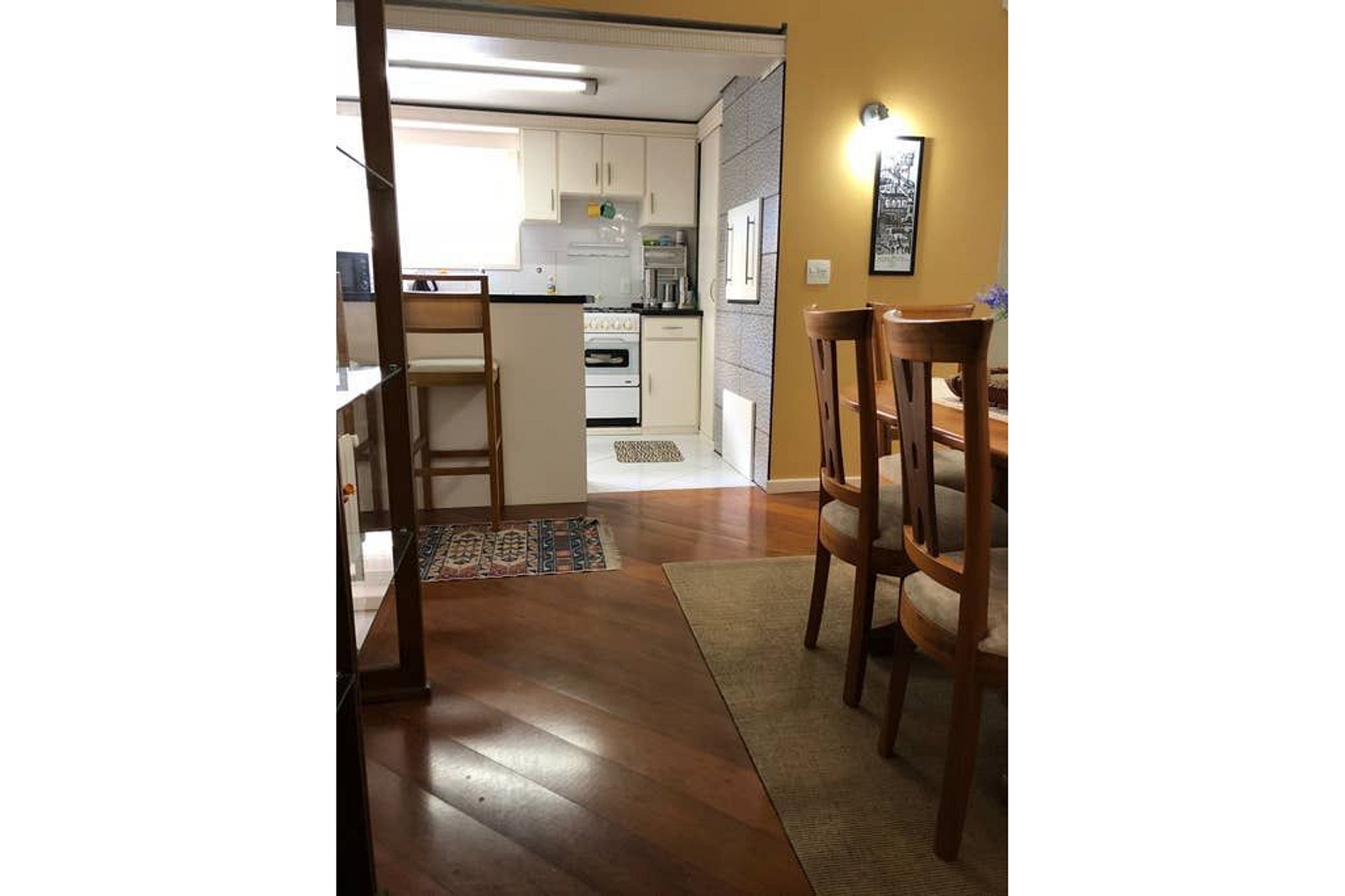 * Sala de jantar que acomoda até 4 pessoas integrada à cozinha;