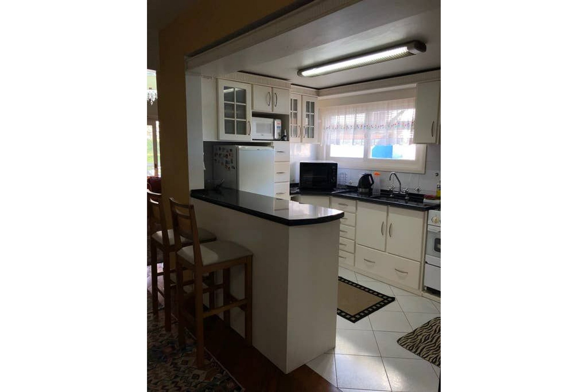 * A cozinha é completa (fogão 4 bocas, micro-ondas e forno elétrico), equipada com churrasqueira e com utensílios necessários para o preparo de refeições em casa.
