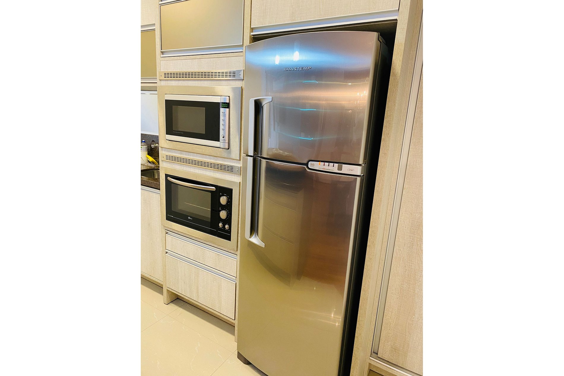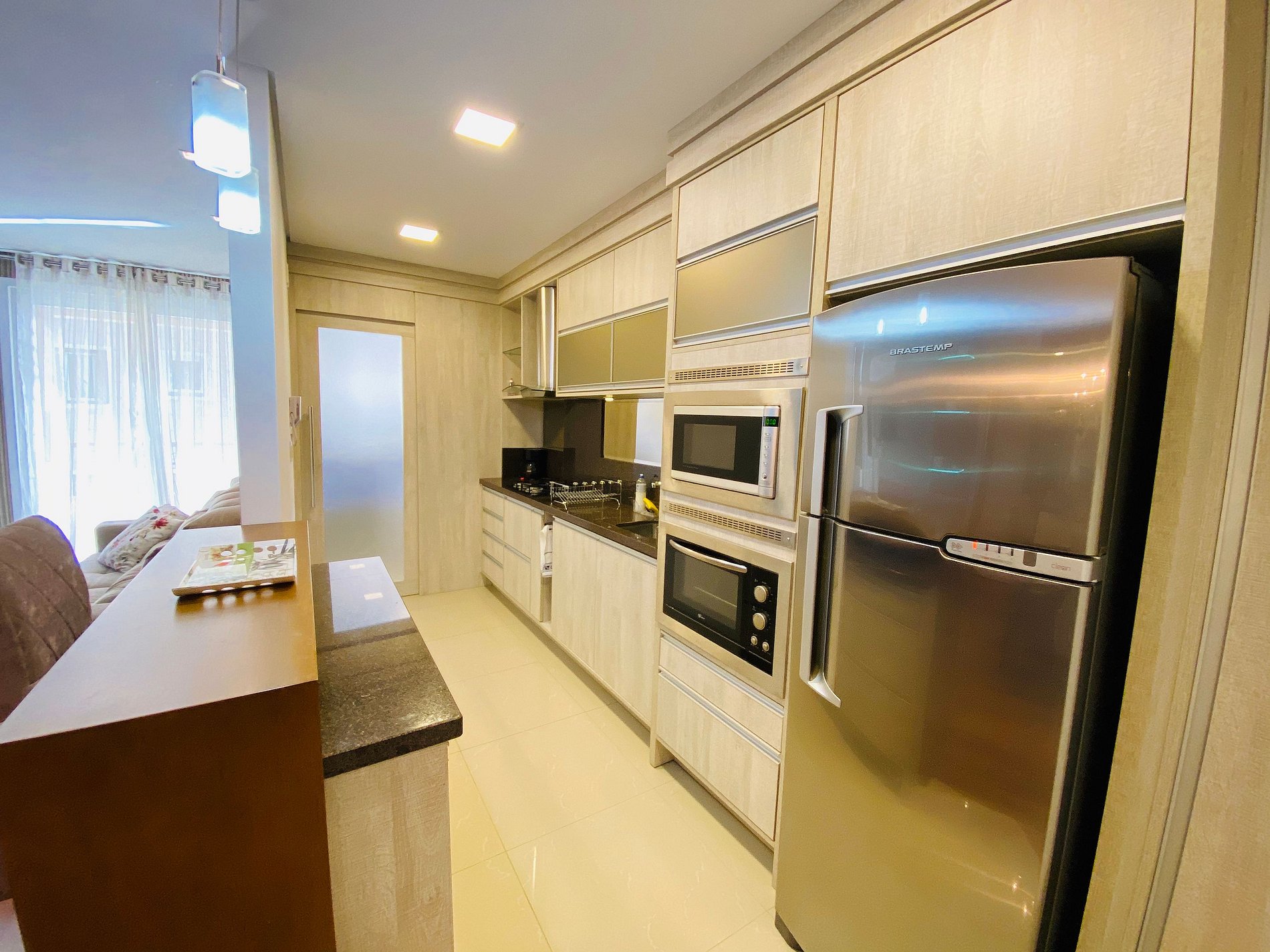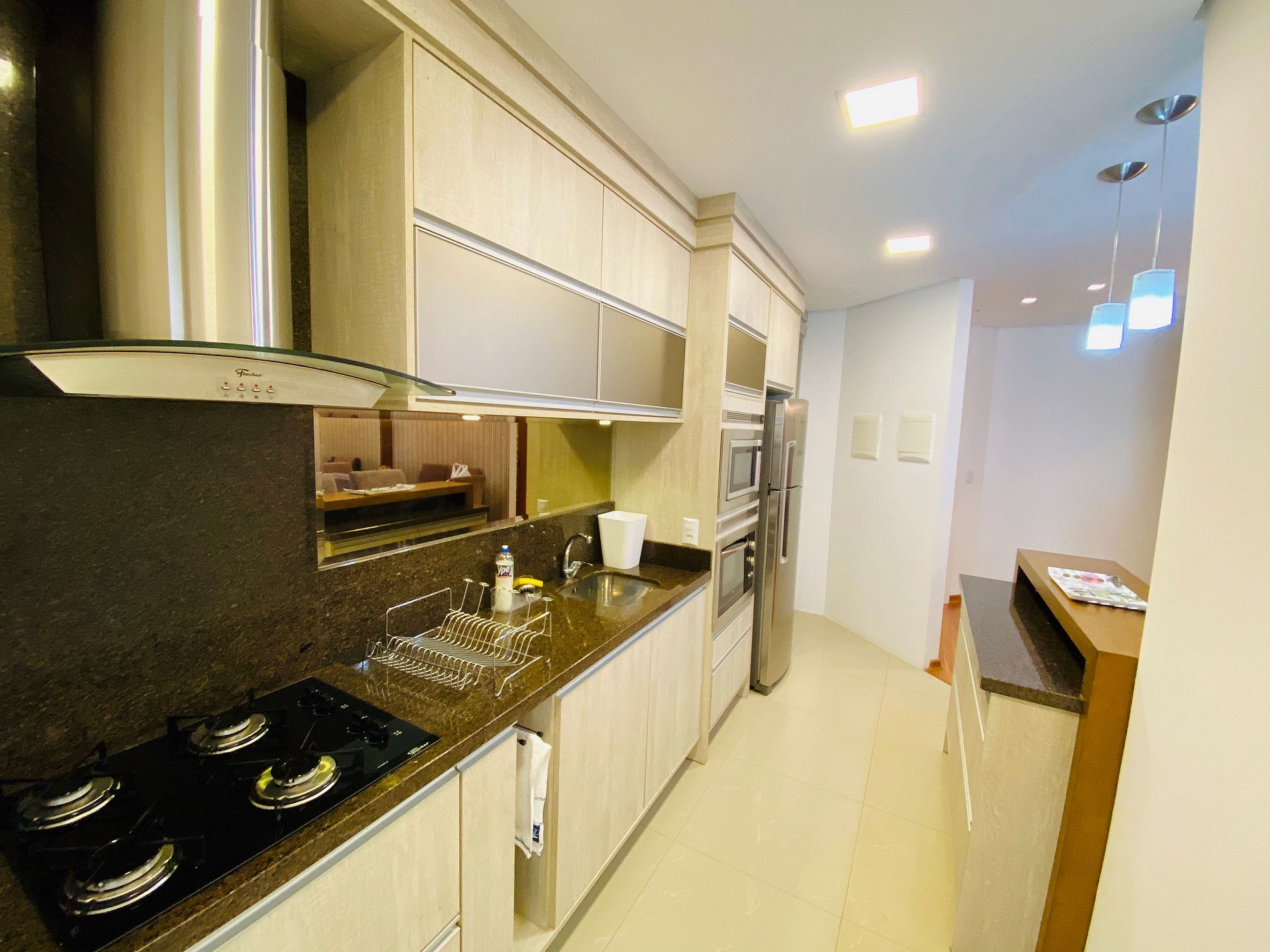 * Cozinha com móveis planejados e TODA equipada: Liquidificador . Fogão cooktop, forno elétrico, micro - ondas, coifa + utensílios para o preparo das refeições;