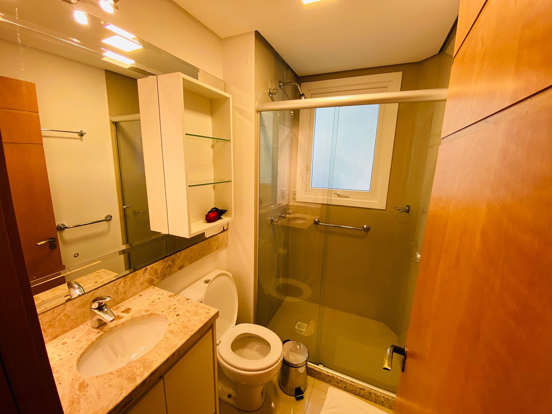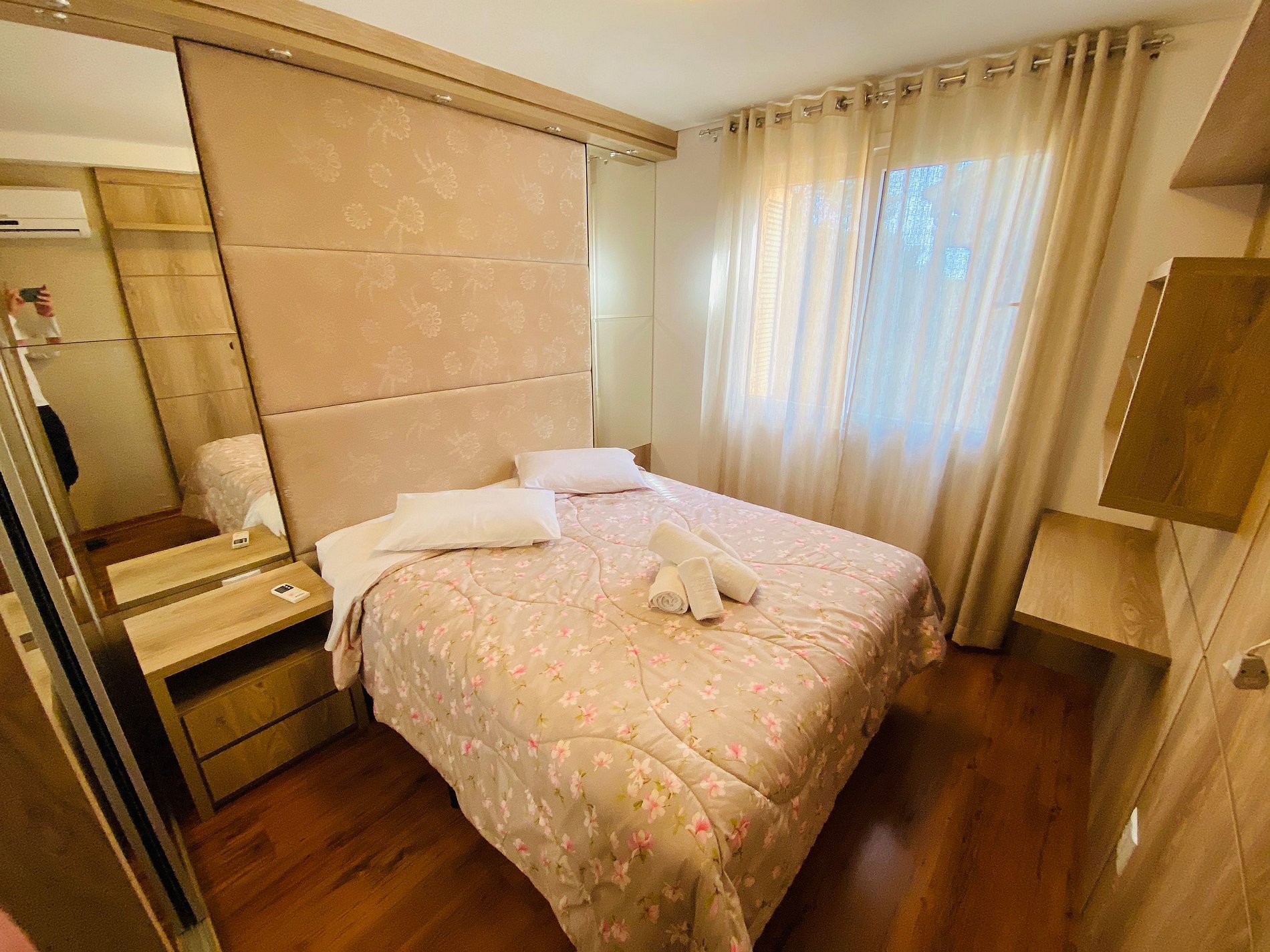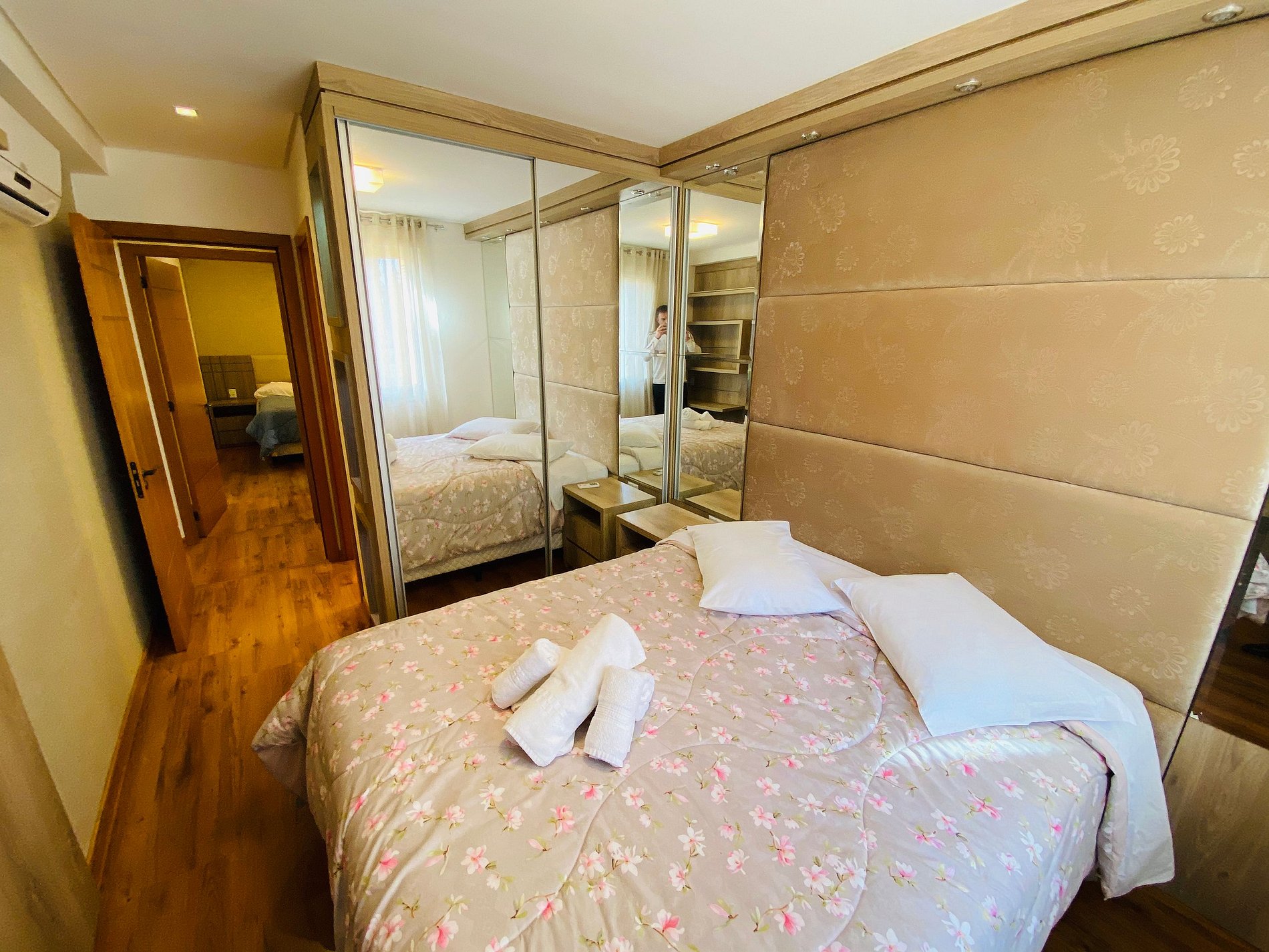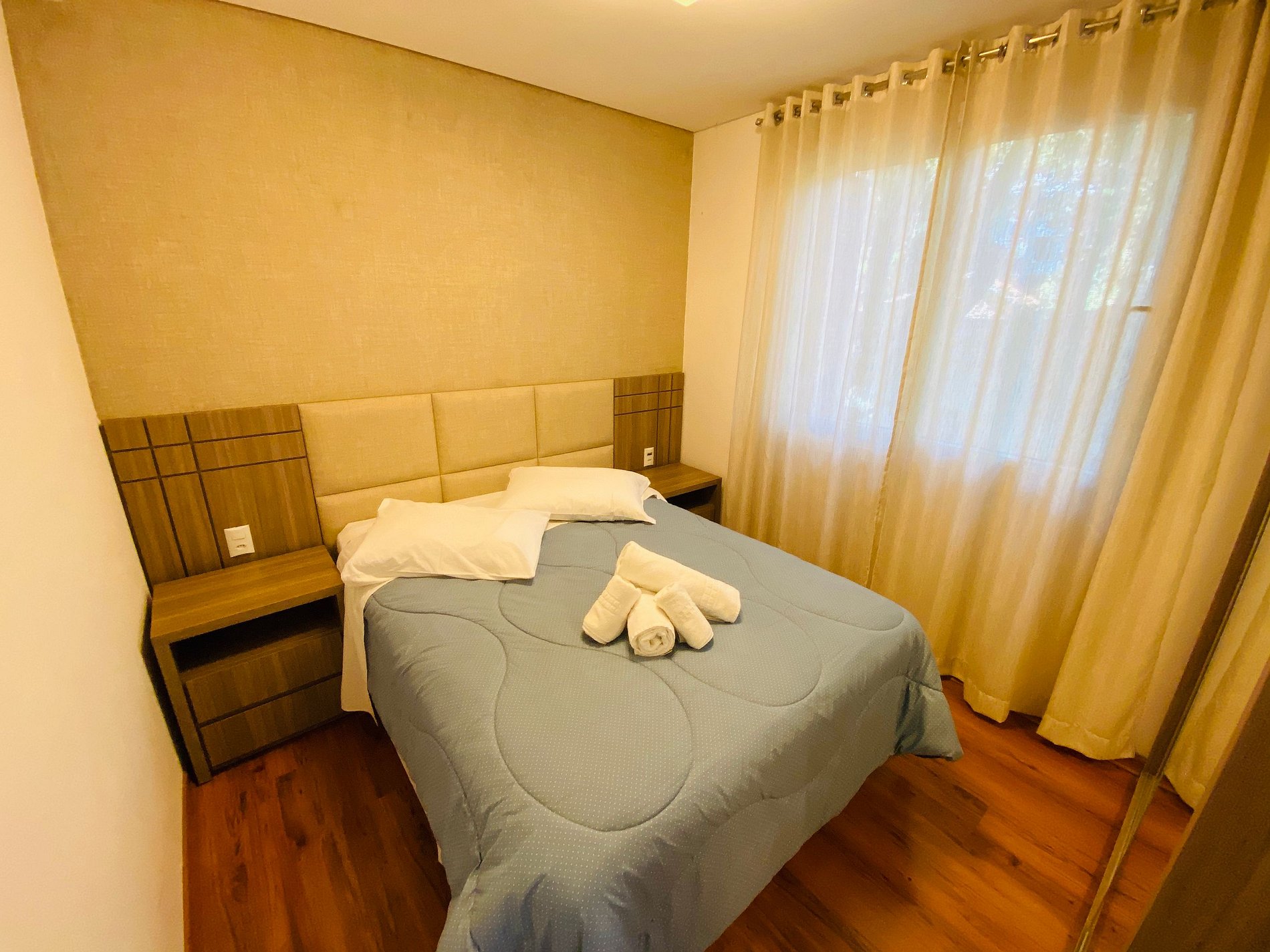 * As suítes são aconchegantes e dispõe de espelhos grandes.