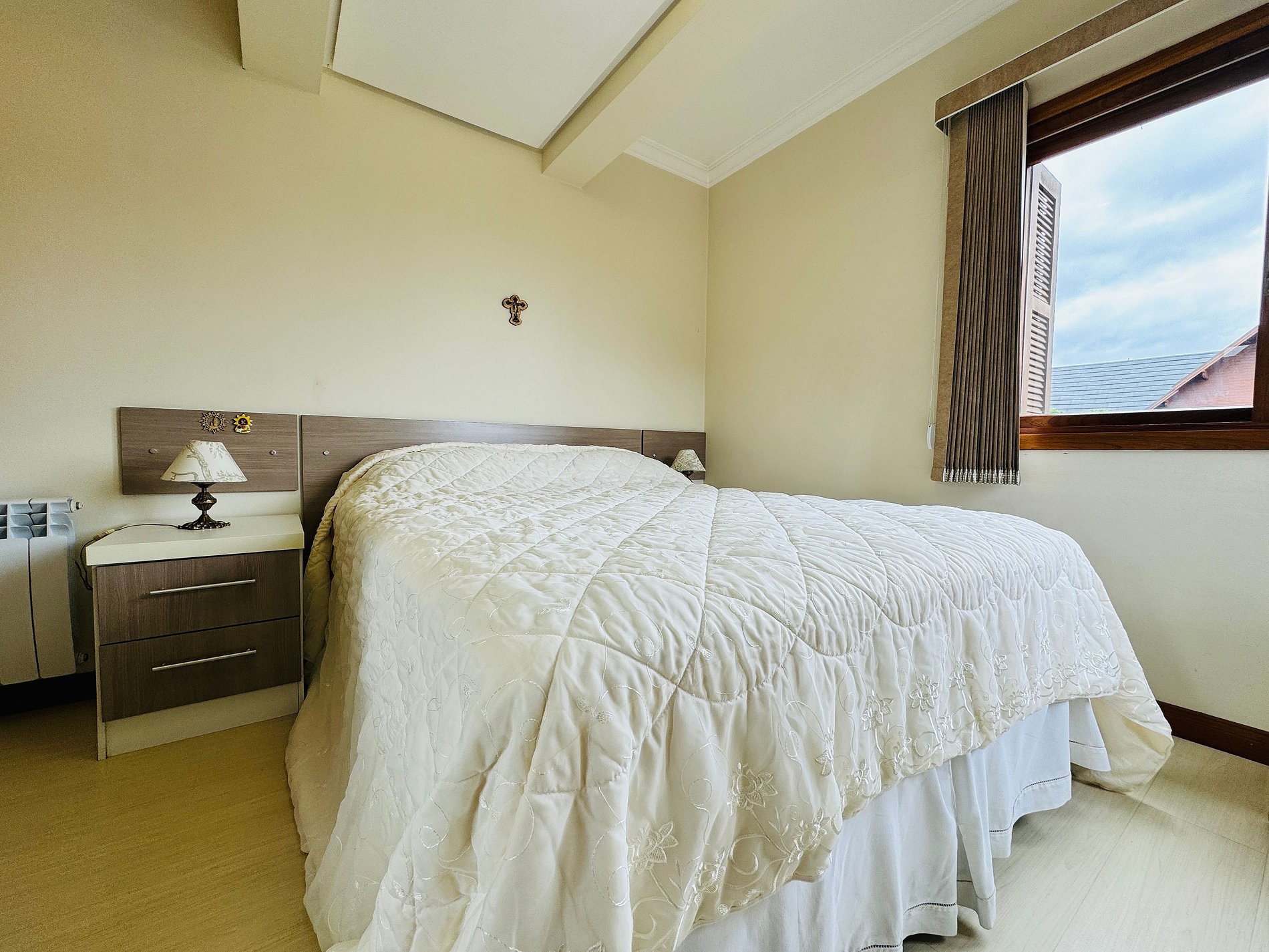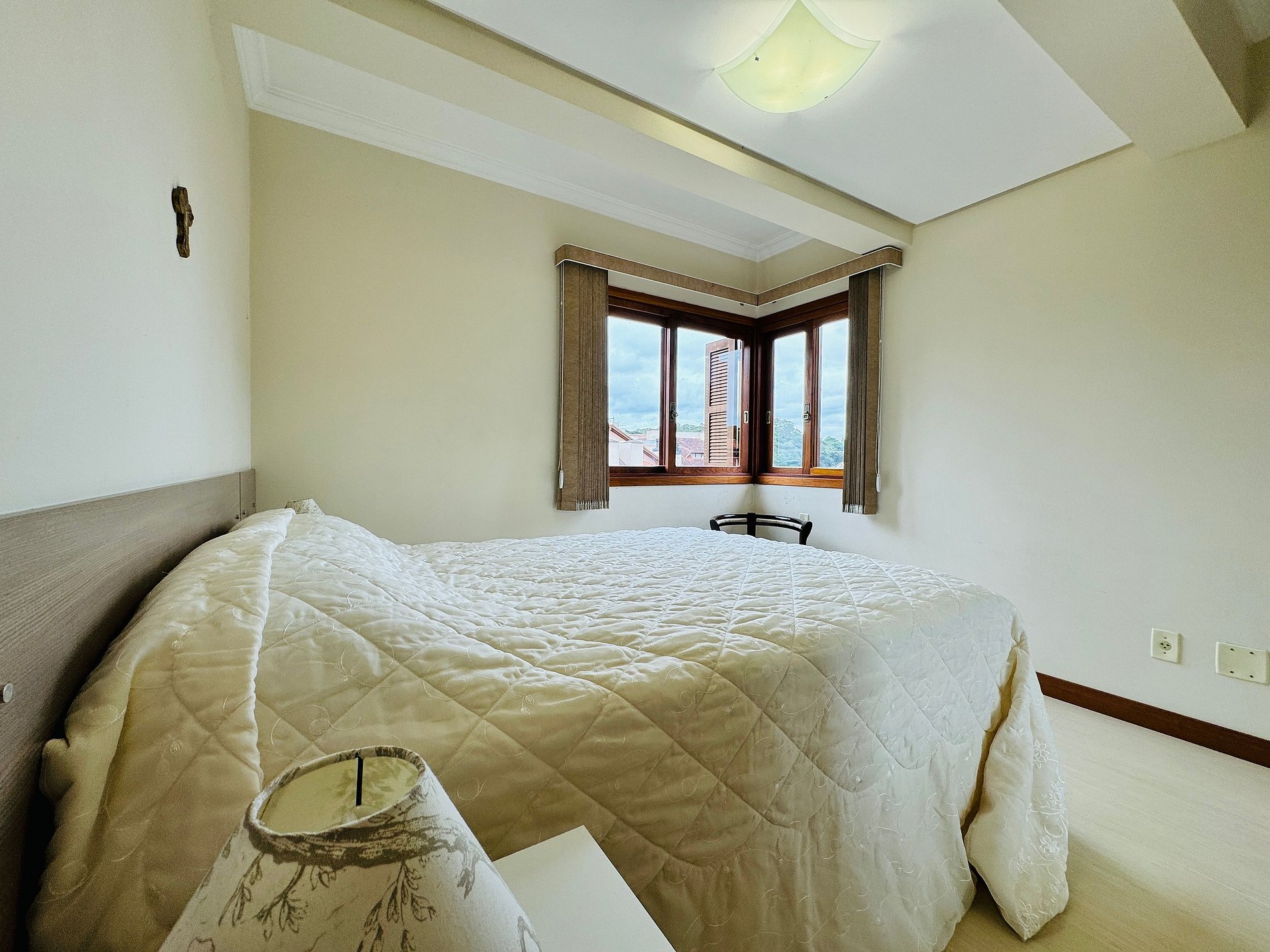 * Quarto 1: Suíte com cama casal (1,38 x 1,88) + armário planejado e cortinas + split 9000 BTUs