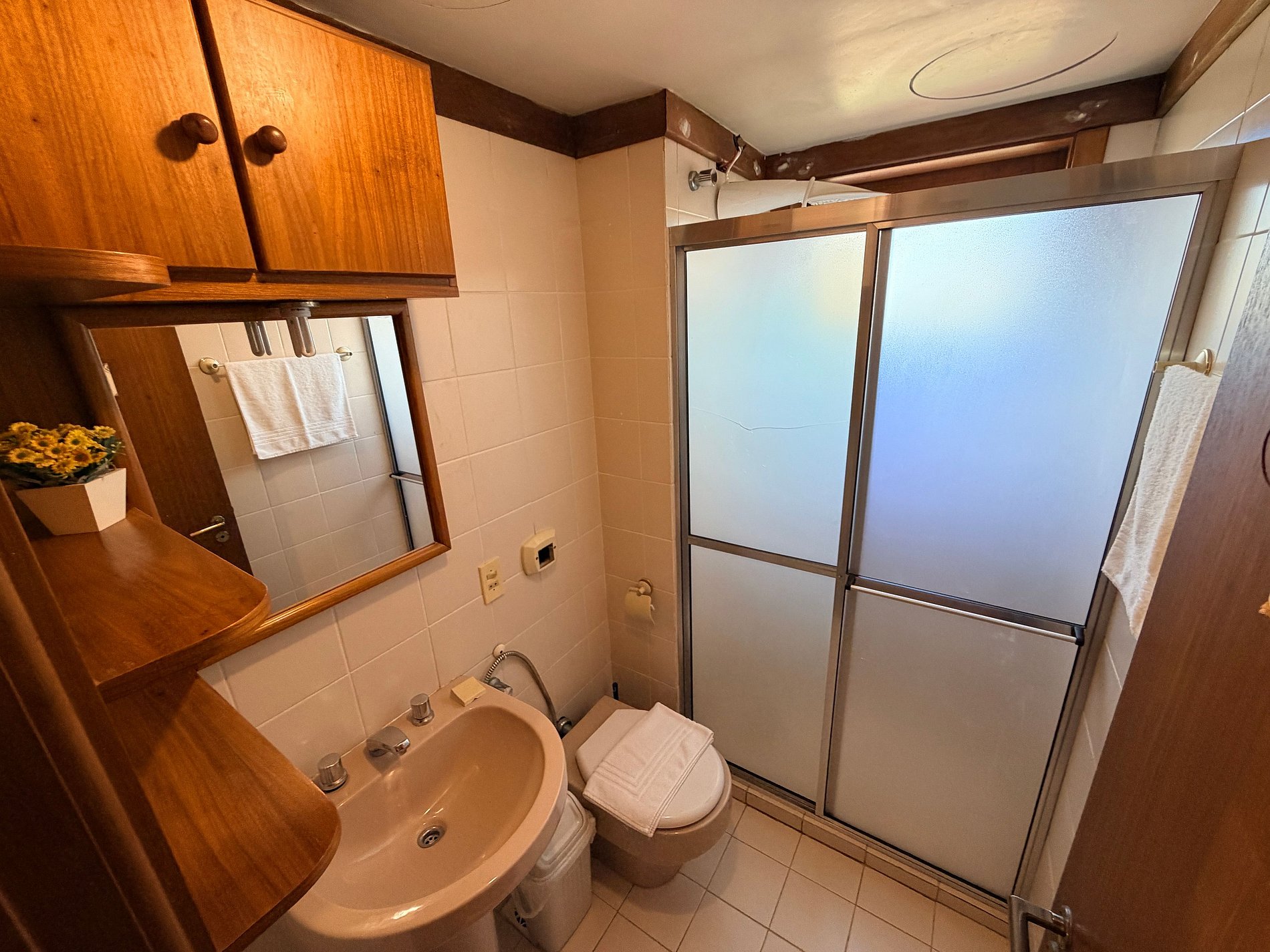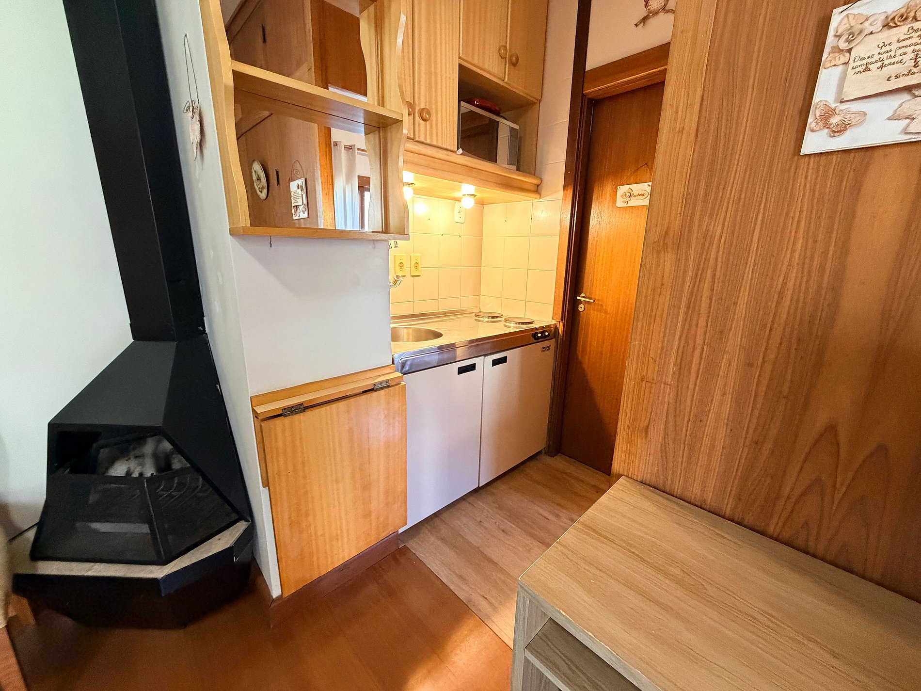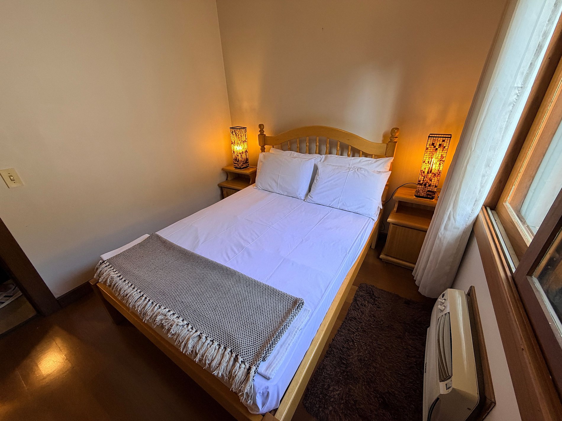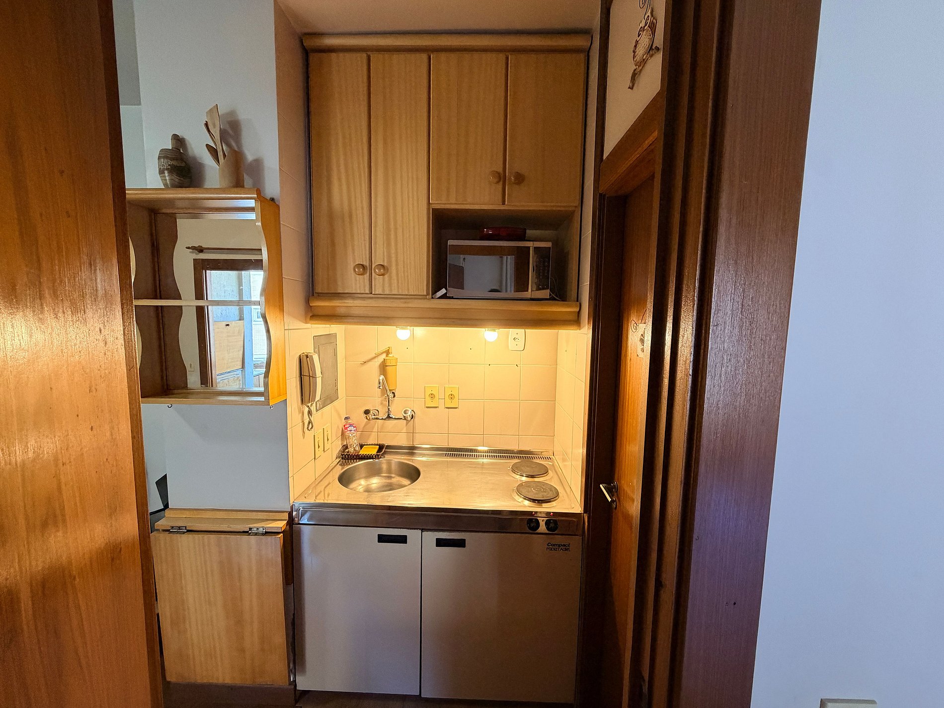 Apartamento de 1 dormitório com uma ampla e iluminada sala de estar que acomoda até 4 pessoas de forma confortável. Dispomos de uma compacta cozinha integrada á sala de estar com lareira (a lenha) e uma varanda (com vista) com churrasqueira e pia de apoio.