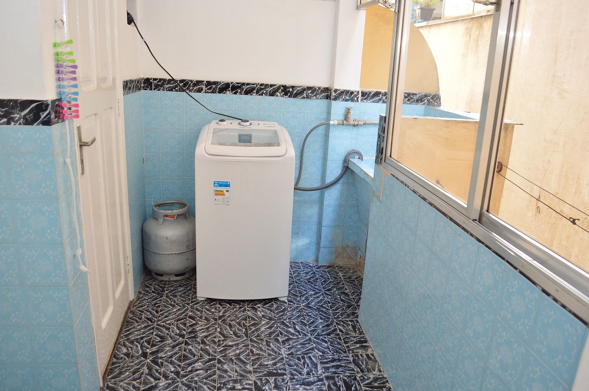 * Área de serviço com tanque de apoio e máquina de lavar roupas;