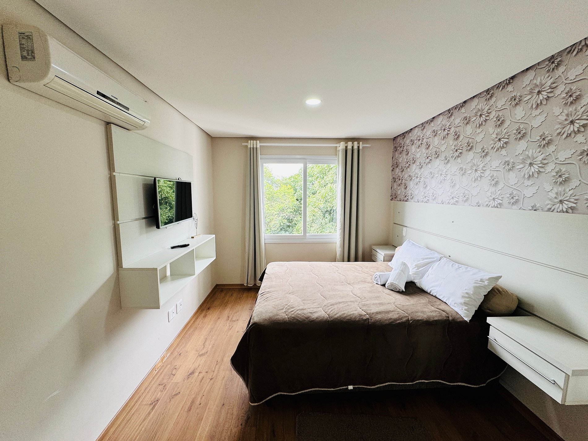 *Quarto1/ Suíte: Armário + cama de casal + AR CONDICIONADO (QUENTE E FRIO) + TV