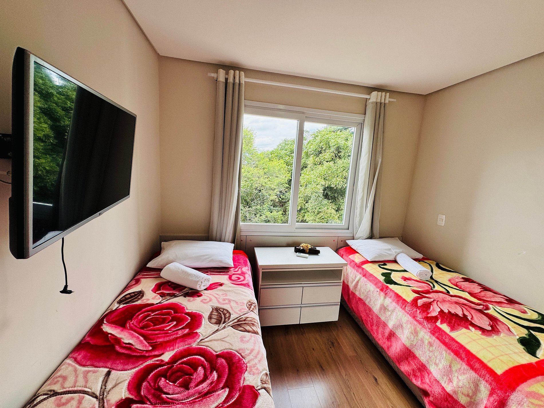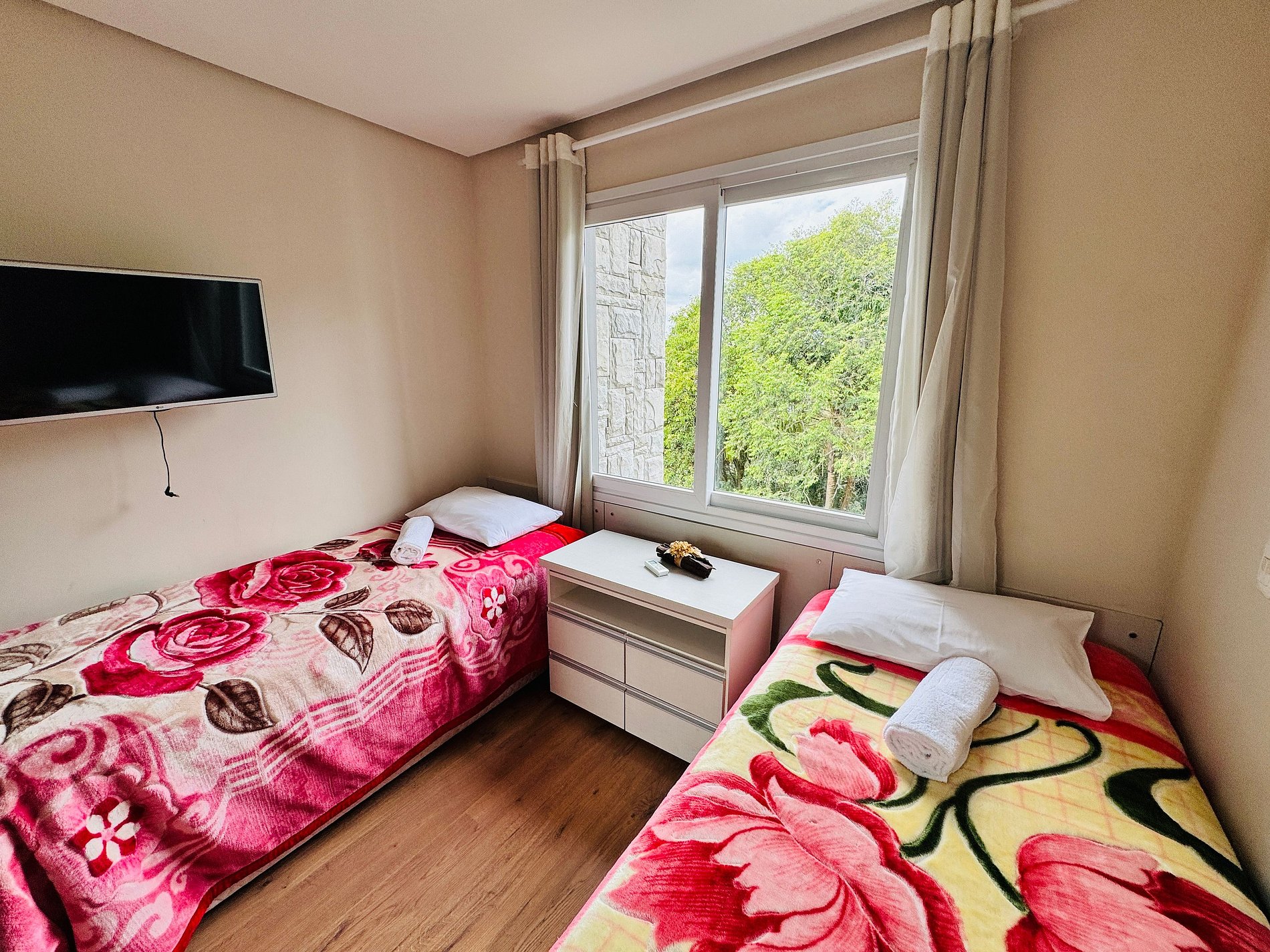 * Quarto 2: Armário + 2 camas de solteiro (com a possibilidade de transformar em cama de casal ) + AR CONDICIONADO (QUENTE E FRIO) + TV
