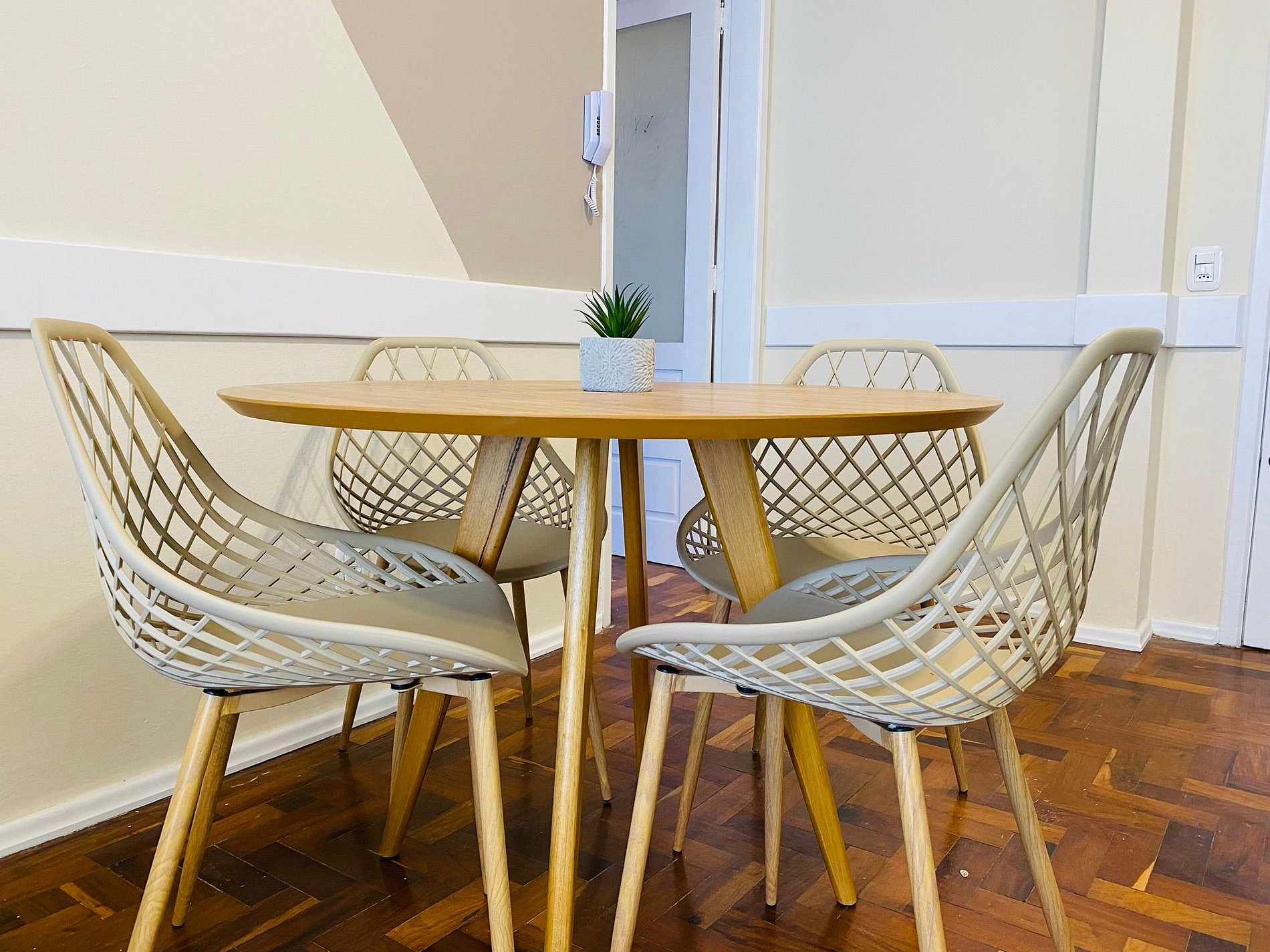A sala de jantar está integrada à sala de estar possibilitando uma maior integração entre os cômodos